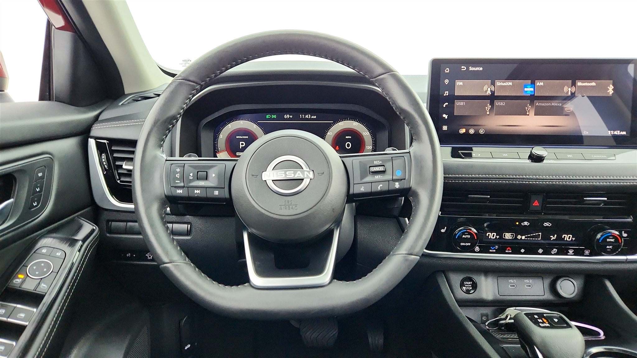 Automatic transmission, Power locks, Cruise, Bluetooth Handsfree, Remote Start/Push Button, Front & Rear Sensors, Blind Spot Warning, AM/FM/XM 3 Month FREE Trial, Exterior Parking Camera Rear, Power Adjustable Heated door mirrors, Dual Power Heated Front Bucket Seats, Heated steering wheel, Leather-Appointed Seat Trim, Memory Driver Seat & Outside Mirrors, Motion-Activated Power Liftgate, Navigation system: NissanConnect with Navigation and Services, NissanConnect featuring Apple CarPlay and Android Auto, Panoramic Moonroof/Shade, Power windows, Rear Door Sunshades, Rear Personal Lights, Remote keyless entry, Reverse Tilt-Down Outside Mirrors, SL Premium Package, Spoiler, Steering Wheel Audio, Tri-Zone Automatic Temperature Control, Wheels: 19" Dark Painted Machine Finished Alloy. Fuel Friendly 1.5L DOHC 29/36 City/Highway MPG.