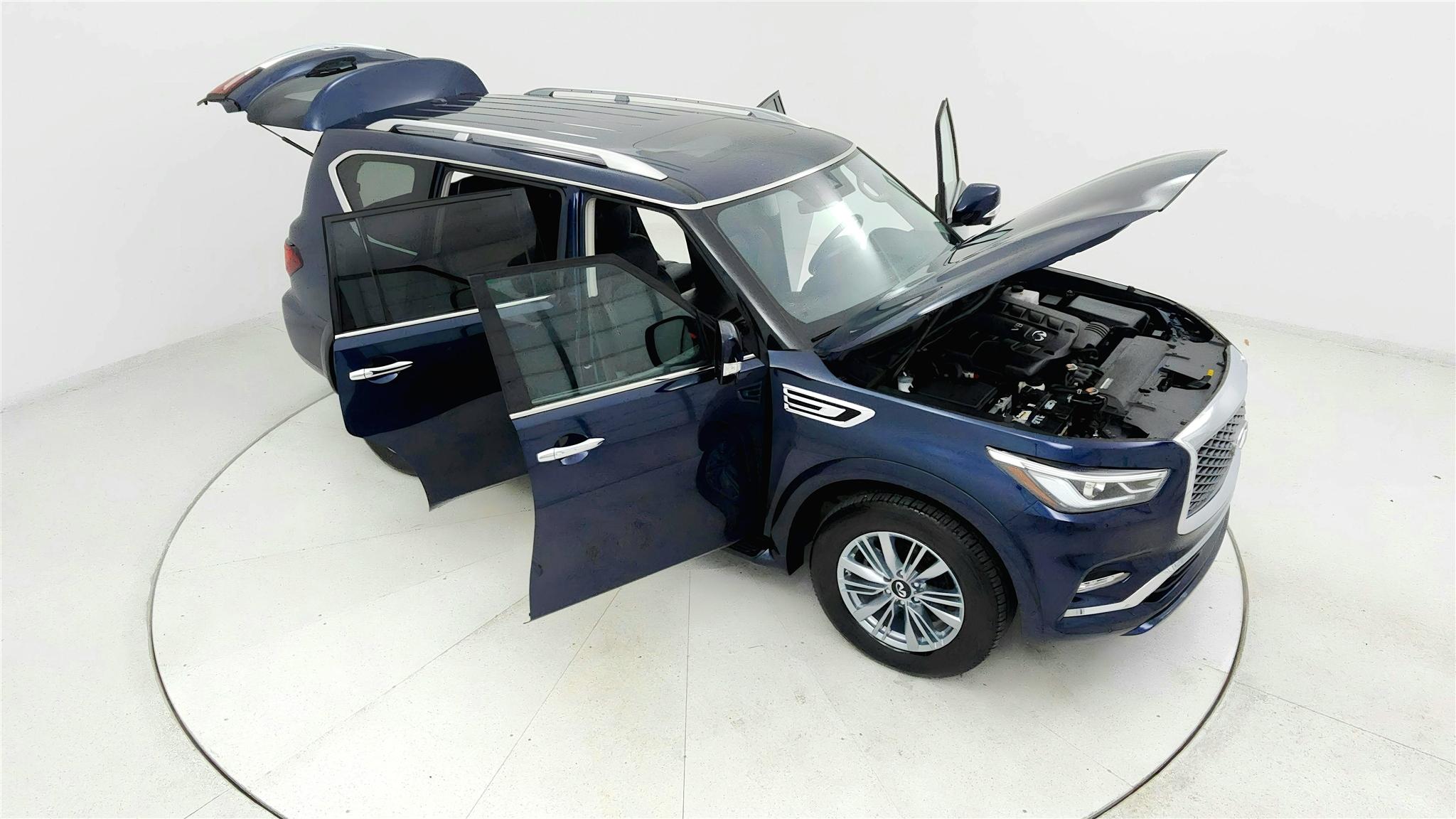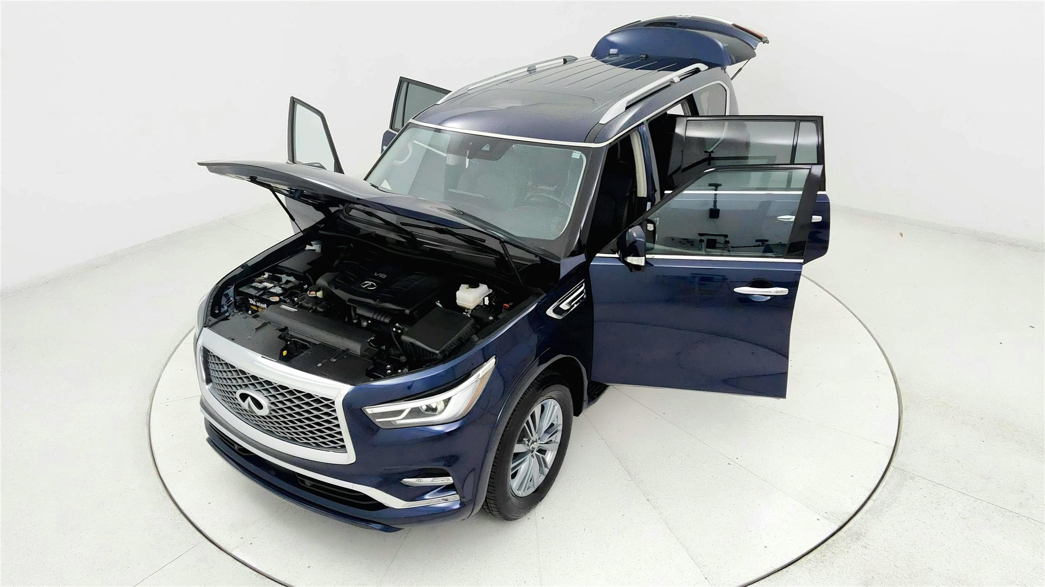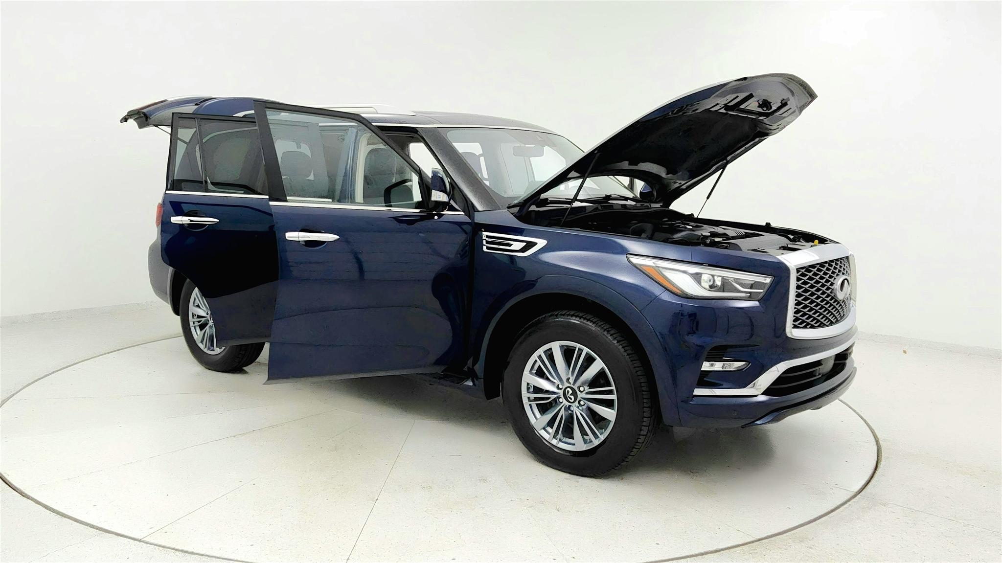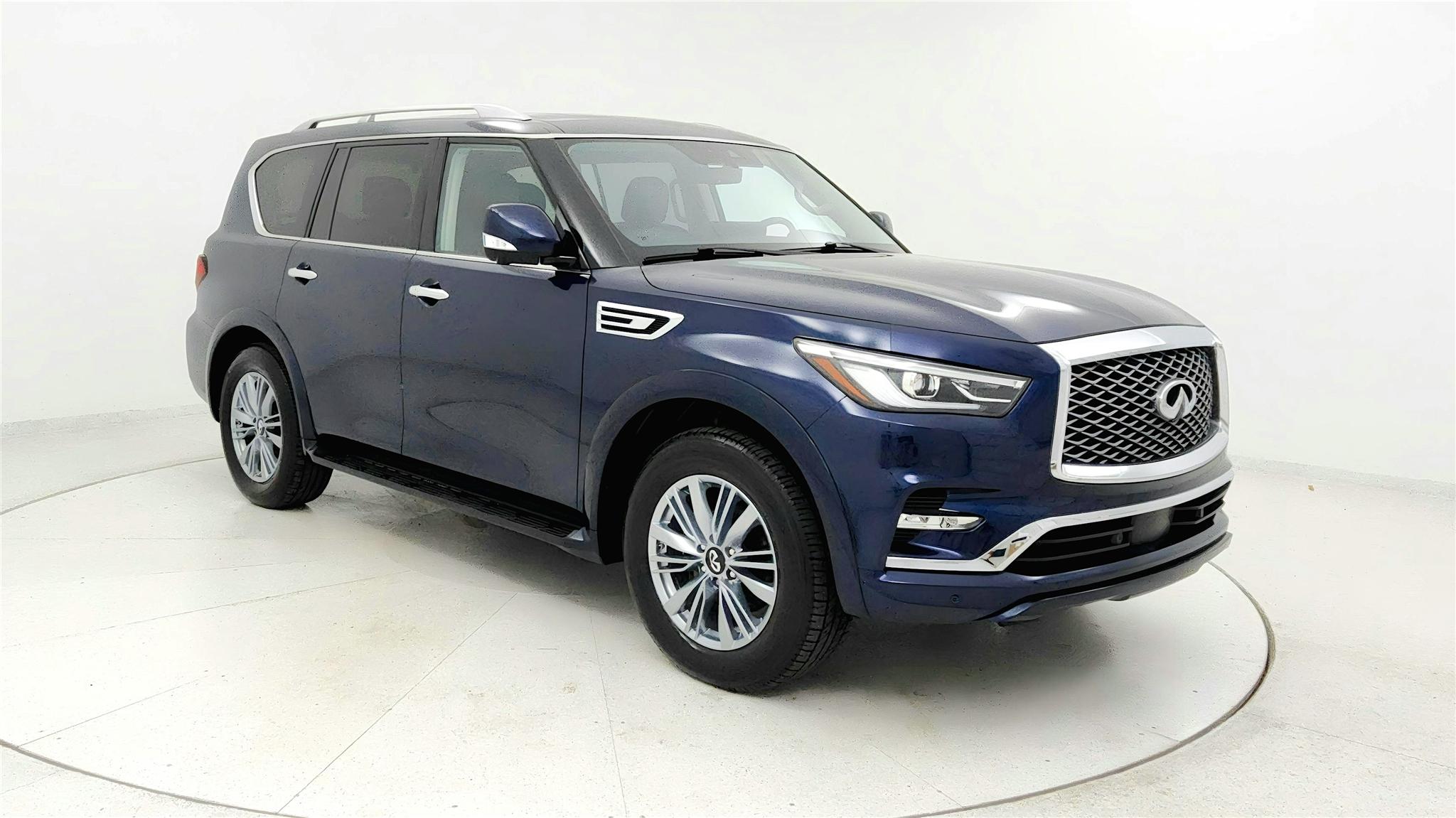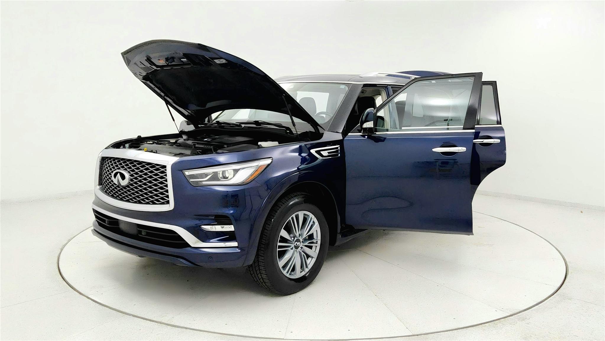 Hermosa Blue 2024 INFINITI QX80 LUXE 57594 Miles. 7 PASSENGER! LEATHER! MOONROOF! CARFAX One-Owner. Clean CARFAX. Automatic transmission, Power locks, Cruise, Bluetooth Handsfree, Remote Start/Push Button, Blind Spot Monitor, Rear Backup Camera. Front & Rear Sensors, 20" Aluminum Alloy Wheels, AM/FM/XM 3 Month FREE Trial, Driver Memory, Front dual zone A/C, Power Fold Heated door mirrors, Heated Front Bucket Seats, Heated steering wheel, HomeLink, Leather-Appointed Seats, Navigation system: INFINITI InTouch Navigation, Power driver seat, Power Liftgate, Power moonroof, Power windows, Radio: Bose Premium Audio System w/13 Speakers, Rear air conditioning, Mid-Row Captains Chairs w/Center Console, Reclining 3rd row seat, Remote keyless entry, Spoiler, Steering Wheel Audio. Powerful 5.6L V8 Engine. Visit us at DeSoto Auto Sales in Olive Branch, MS, serving Southaven, MS, Memphis, TN, Hernando, MS, Horn Lake, MS, Collierville, TN, Germantown, TN, DeSoto County, Shelby County, North Mississippi, West Tennessee, Arkansas and Beyond!